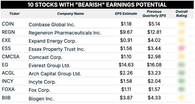 Regeneron Pharmaceuticals Inc. (REGN) may see a $3 drop in EPS, while Expand Energy Corp. (EXE) could see a similar quarter-over-quarter decrease.