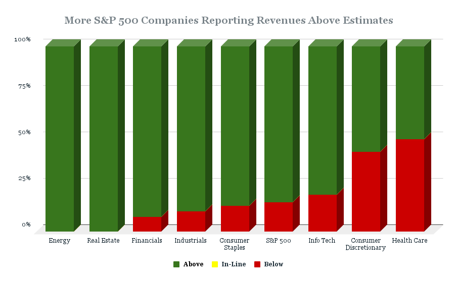 Nearly 84% of the companies already in the books have reported actual revenue above estimates, which is above the 5-year average of 70% and the 10-year average of 66%.