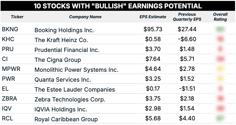 These stocks are expected to beat their previous quarter’s earnings per share (EPS), and thus, if those expectations are met or exceeded, they could potentially trade higher.