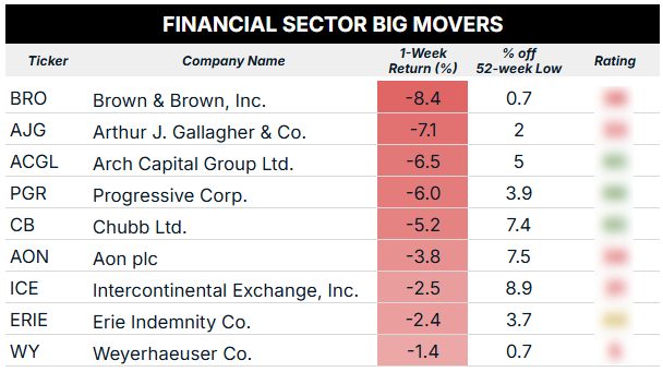 Looking at the list above, I’ll note that the two worst-performing stocks (BRO and AJG) were already rated “Bearish” in my Green Zone Power Rating system. It was already waving a red flag on those stocks so to speak.