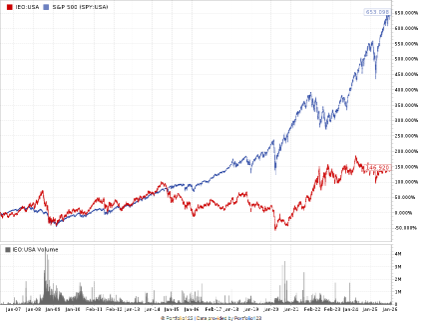 As you can see, IEO has gained 147% since January 2007. However, the benchmark index has jumped more than 653% during the same time.