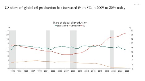 When Steele first uttered the phrase, there was reason behind it. The U.S. accounted for only about 8% of global oil production at that time.