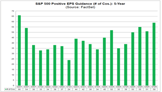 A total of 59 companies said their earnings would be higher in the coming quarter. The last time that many companies reported higher guidance was second-quarter 2021.