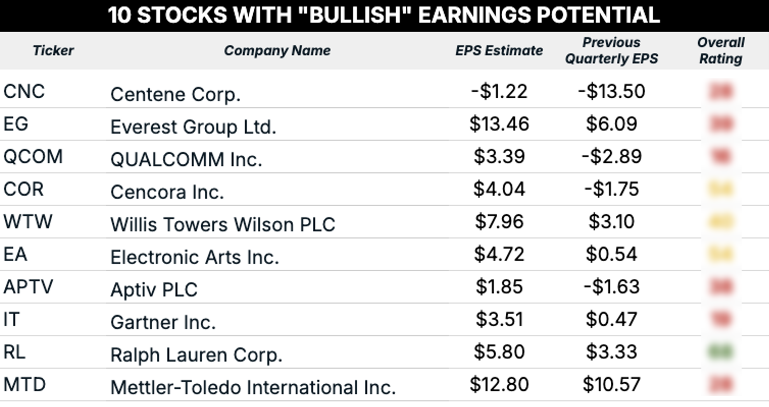 These stocks are expected to beat their previous quarter’s earnings per share (EPS), and thus, if those expectations are met or exceeded, they could potentially trade higher.