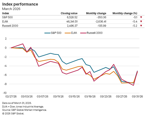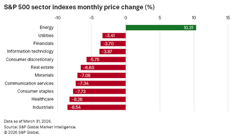Index moves were extremely sensitive to headline updates, as evidenced by the broad market rising 2.9% on March 31 after reports that the U.S. may end military operations against Iran.