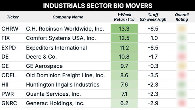 Some of the biggest winners happened to be in logistics and transportation companies. For example, C.H. Robinson Worldwide (CHRW), Expeditors International of Washington (EXPD) and Old Dominion Freight Line (ODFL) all had a fantastic week.