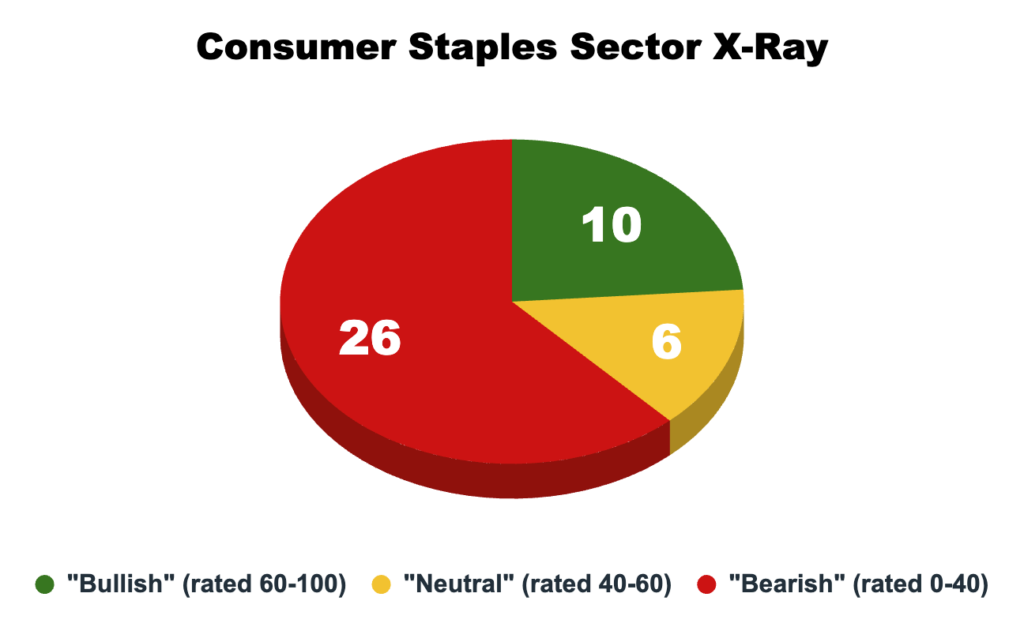 Investors aren’t entirely crazy to write off consumer staples. My Green Zone Power Ratings system rates 26 out of the 42 stocks in the sector as “Bearish” with another six as “Neutral.” Only 10 rate as “Bullish.”