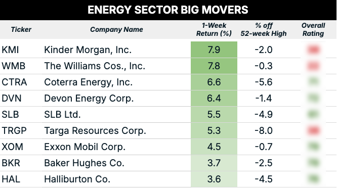 Of course, no conversation about energy is complete without at least a casual mention of ExxonMobil (XOM), the world’s largest integrated oil major. Exxon also rates as “Bullish” and offers exposure to virtually the entire energy value chain.