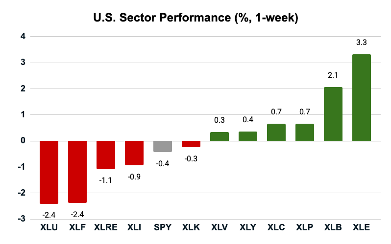 So, it shouldn’t be all that surprising to see energy and materials enjoying a strong week. The State Street Energy Select Sector SPDR ETF (XLE) and the State Street Materials Select Sector SPDR ETF (XLB) finished last week up 3.3% and 2.1%, the continuing their run of strong performance.