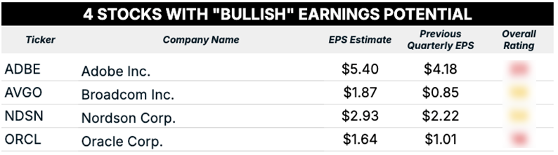 These stocks are expected to beat their previous quarter’s earnings per share (EPS), and thus, if those expectations are met or exceeded, they could potentially trade higher.