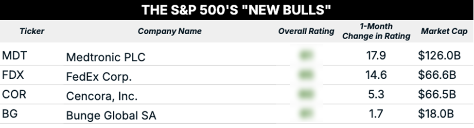 So with that in mind, let’s take a look at the S&P 500 stocks that are newly rated “Bullish” (rated 60 or higher) this week.