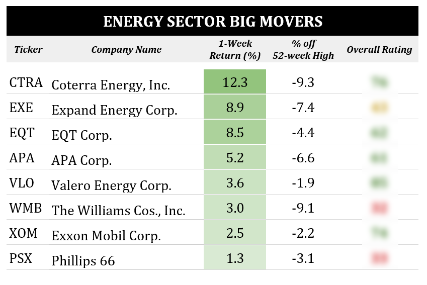 It might not be as sexy as tech, but energy was the winner last week. Below are the best-performing energy stocks that finished the week positive and closed within 10% of a 52-week high.