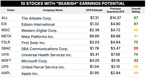 Three of the most recognized names in the world are sitting on this bearish list, and the quarter-over-quarter EPS drops are hard to ignore.