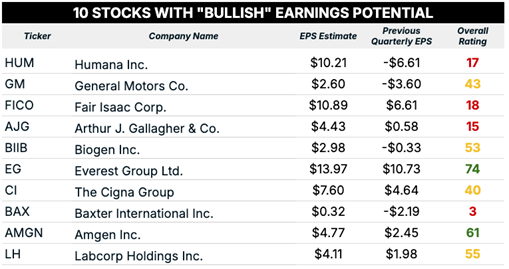 Now, let’s jump into some “bullish” earnings projections for next week…