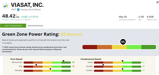That is strong considering that VSAT had an overall rating of 29 just a year ago – meaning the stock’s overall rating has nearly doubled in a year.