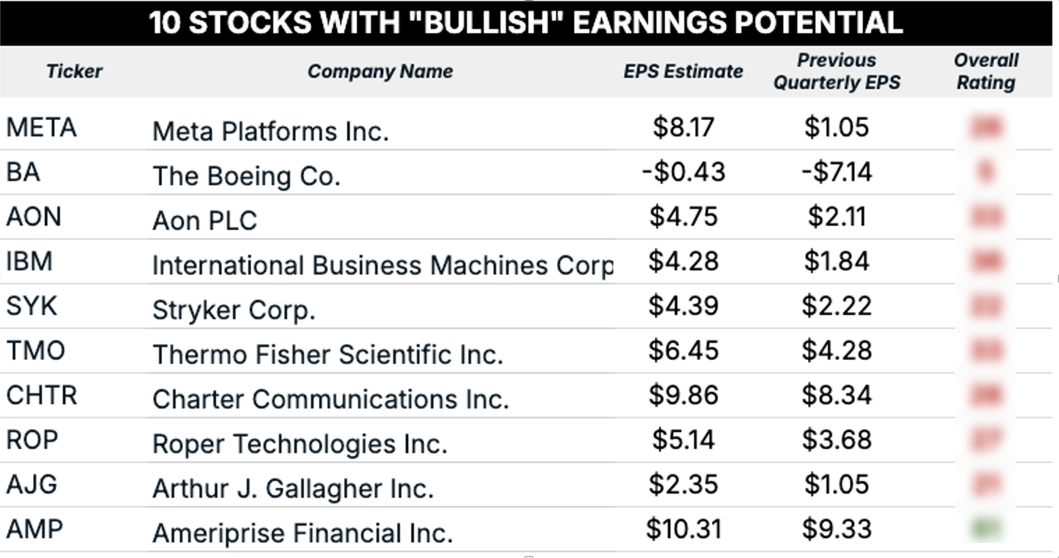 - 10 or more analysts must cover the stock.